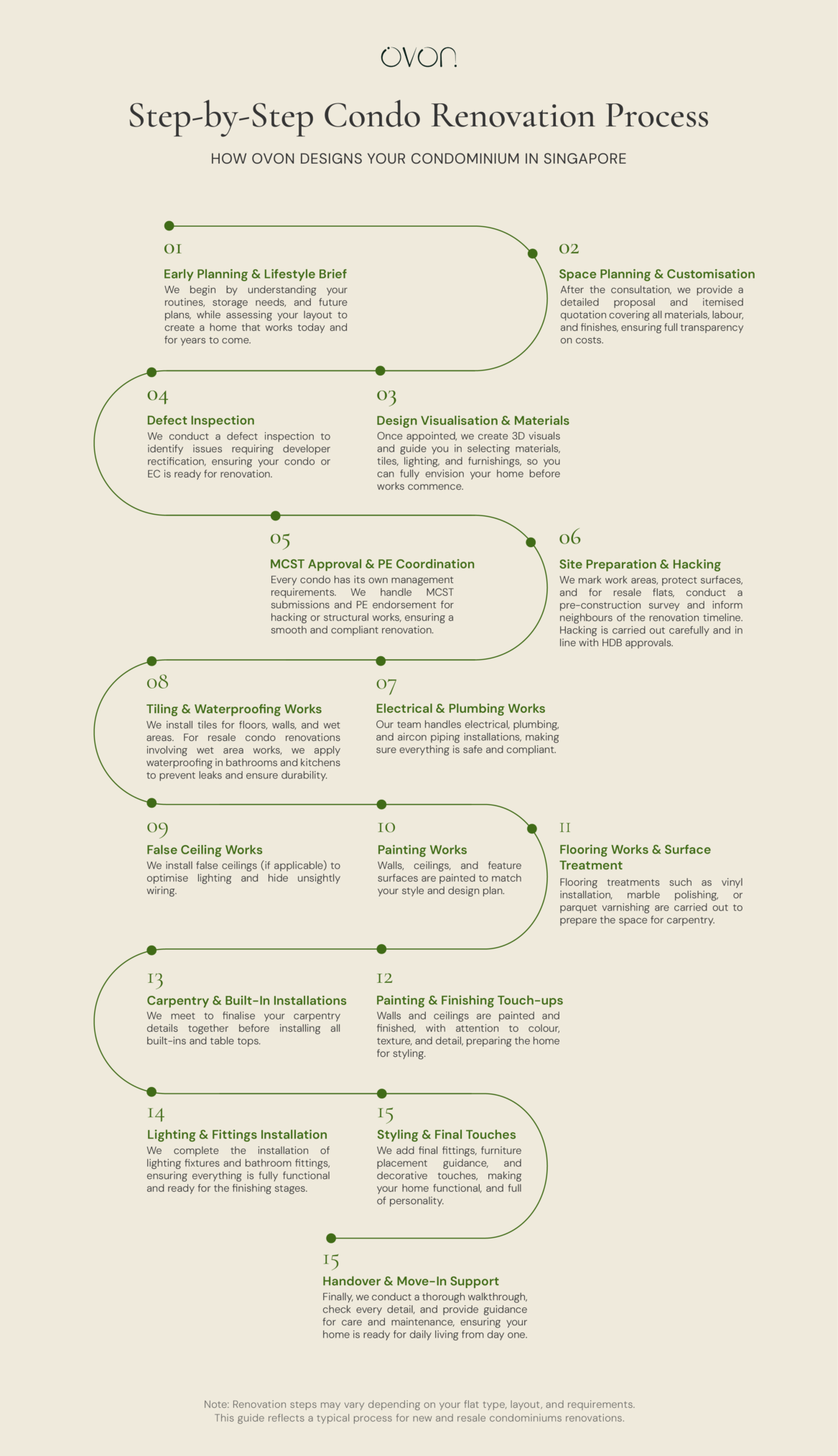 Our condo renovation roadmap reflects the structured process we use to manage condo renovations in Singapore, from planning and approvals to construction and final handover.