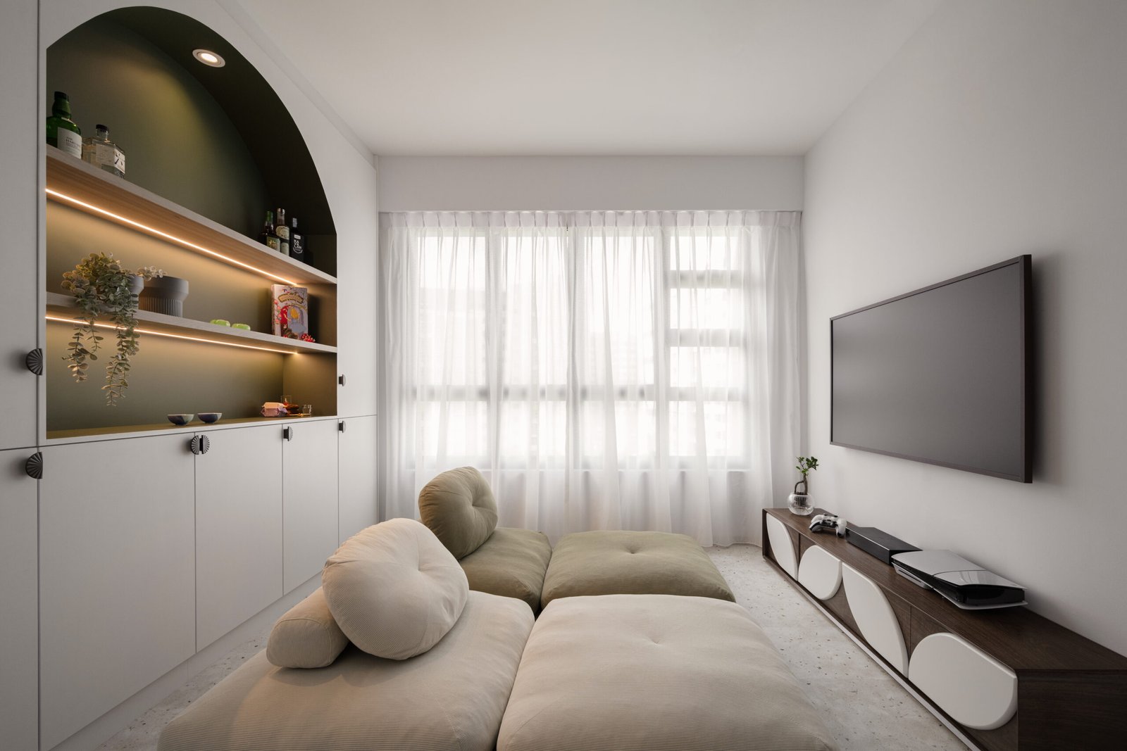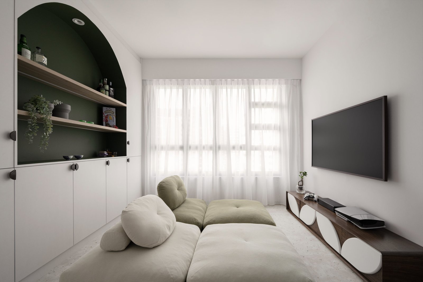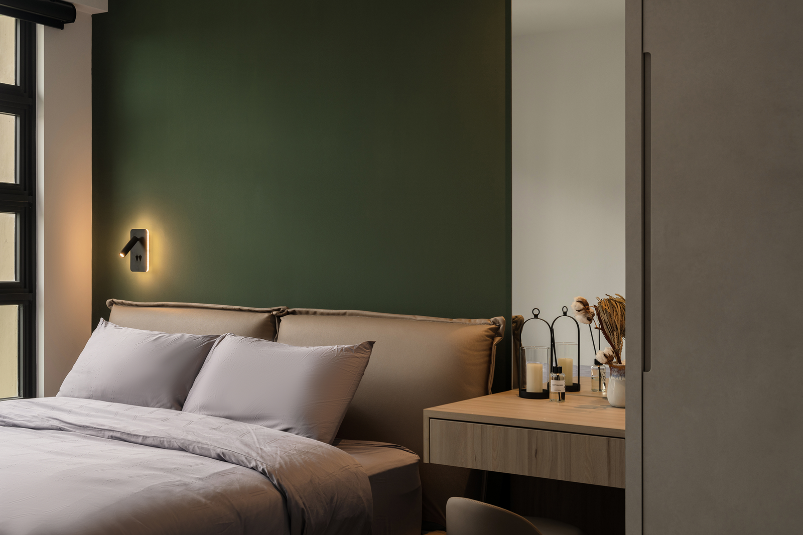 From lush green walls to wood accents every corner of this home feels larger, brighter, and thoughtfully designed. It’s a green-centric retreat where bold colour, intentional planning, and personality coexist, making a modest BTO flat feel expansive, vibrant, and personal.