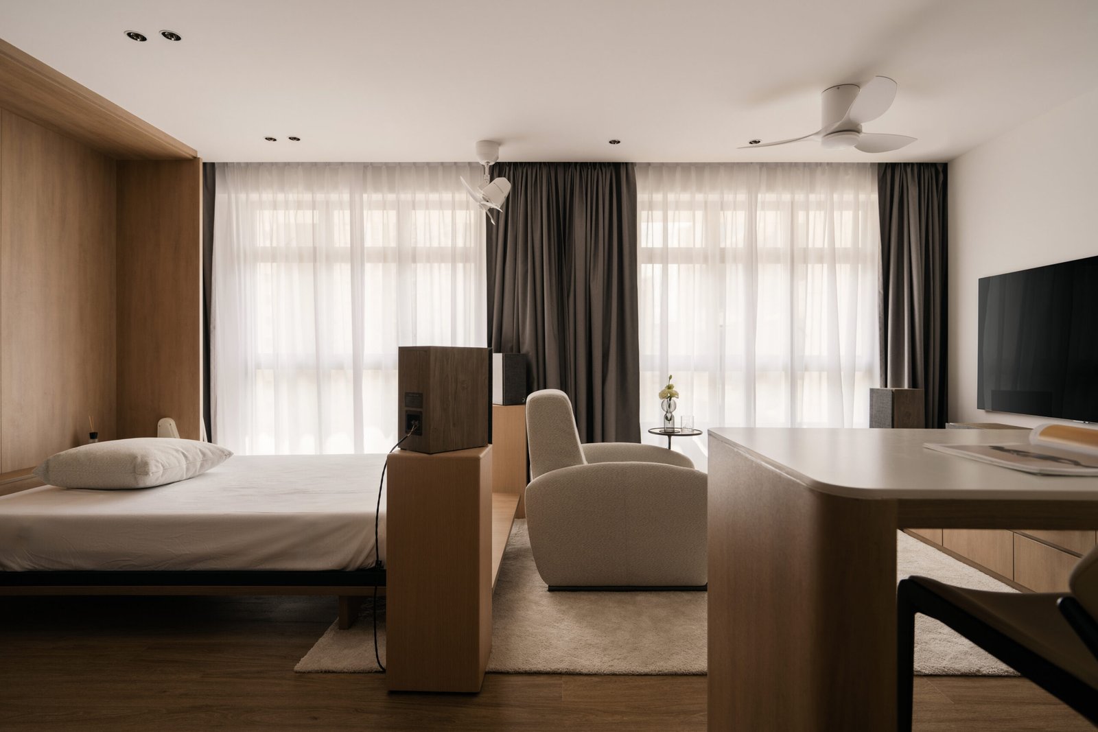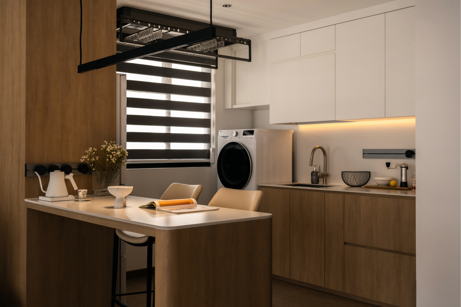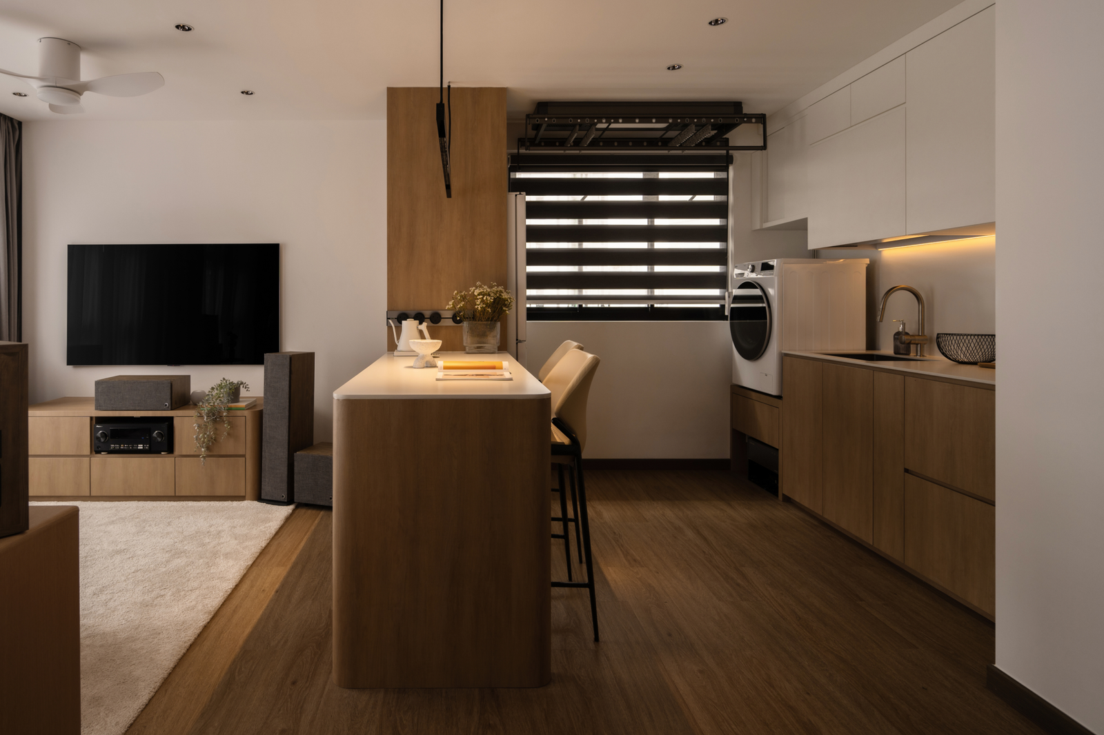 Every detail is curated to support rest, hobbies, and weekend rituals, making this compact space a tranquil hideaway from the pace of the city.