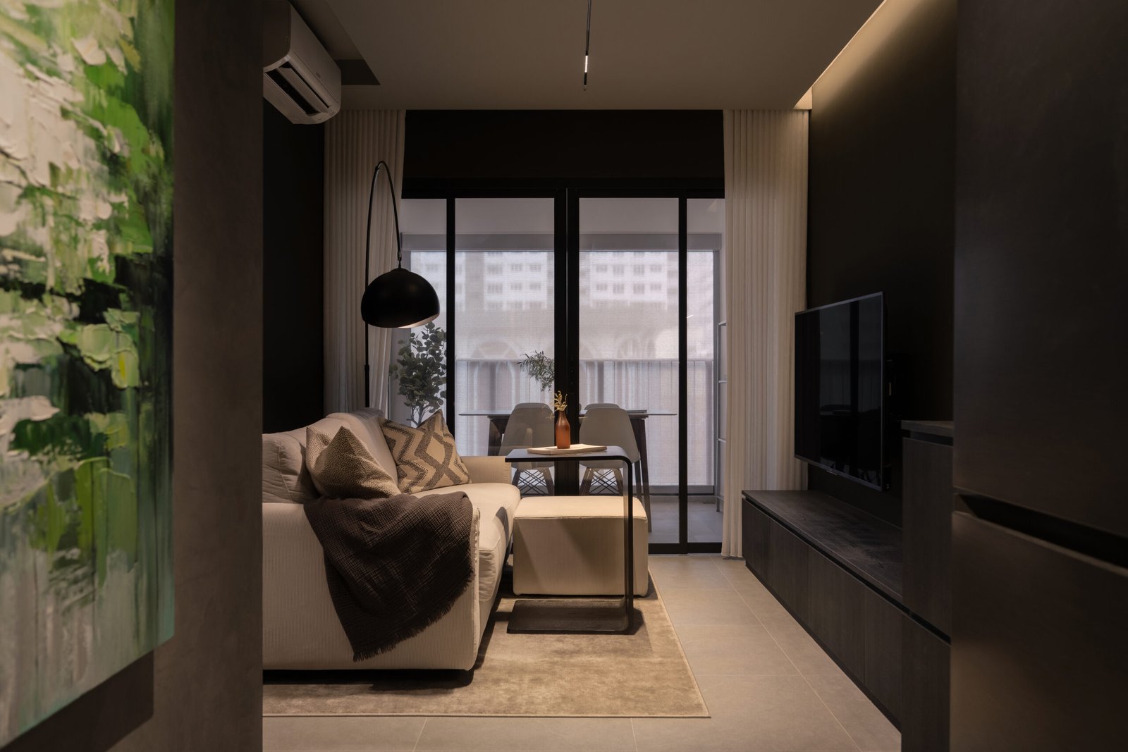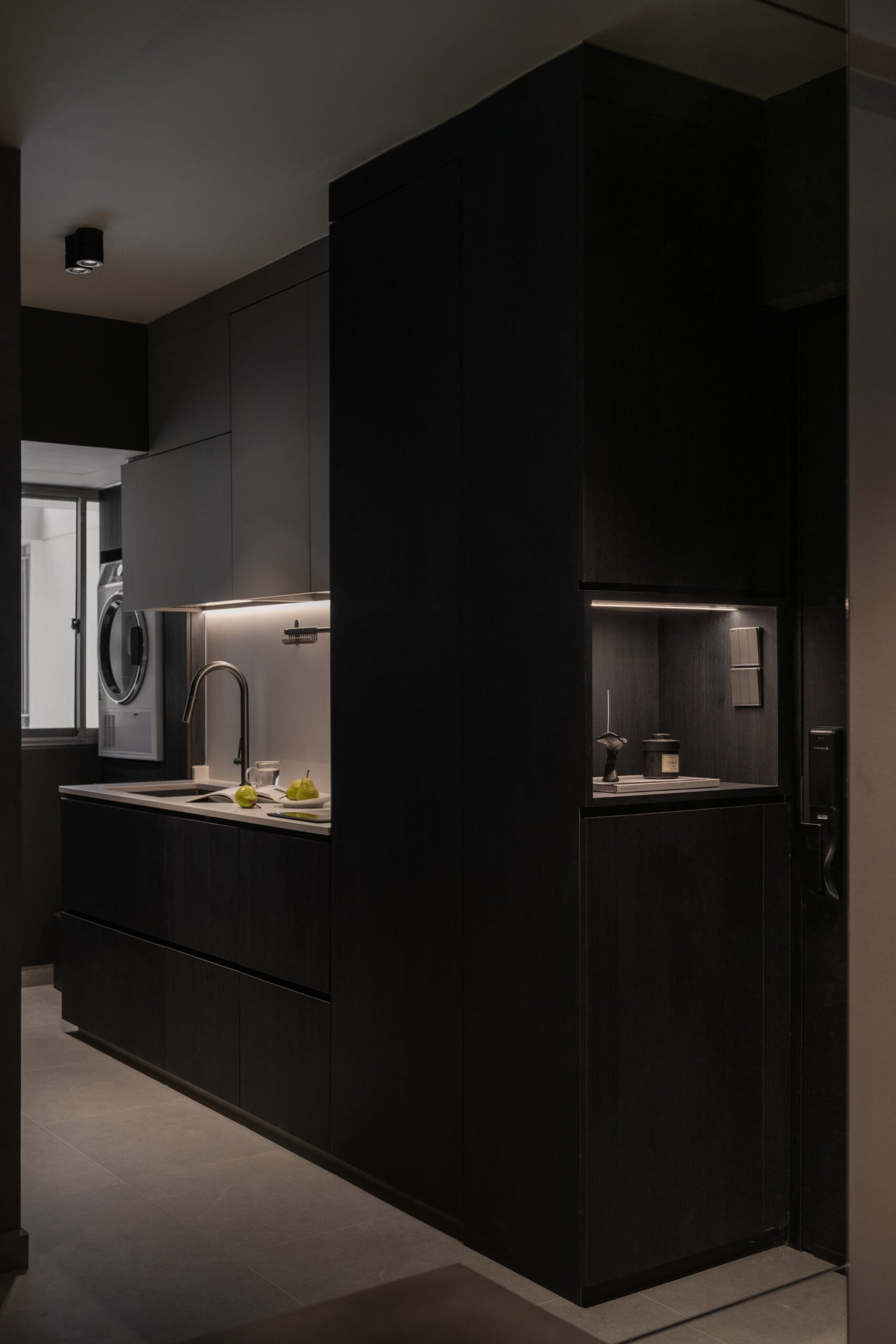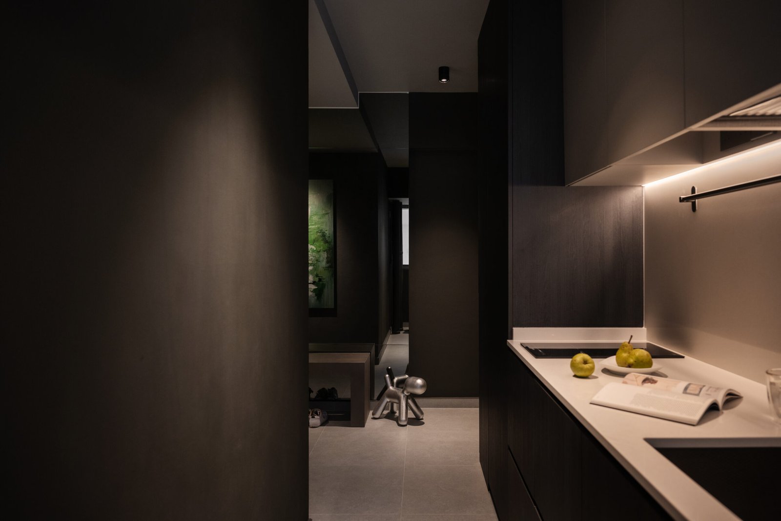 Designed with a love for darker tones and a cosy yet contemporary aesthetic, this three-room flat reflects the owner’s wish for a minimalist home that is both functional and welcoming. The space was reimagined to maximise space while bringing in a quiet sense of modern living.