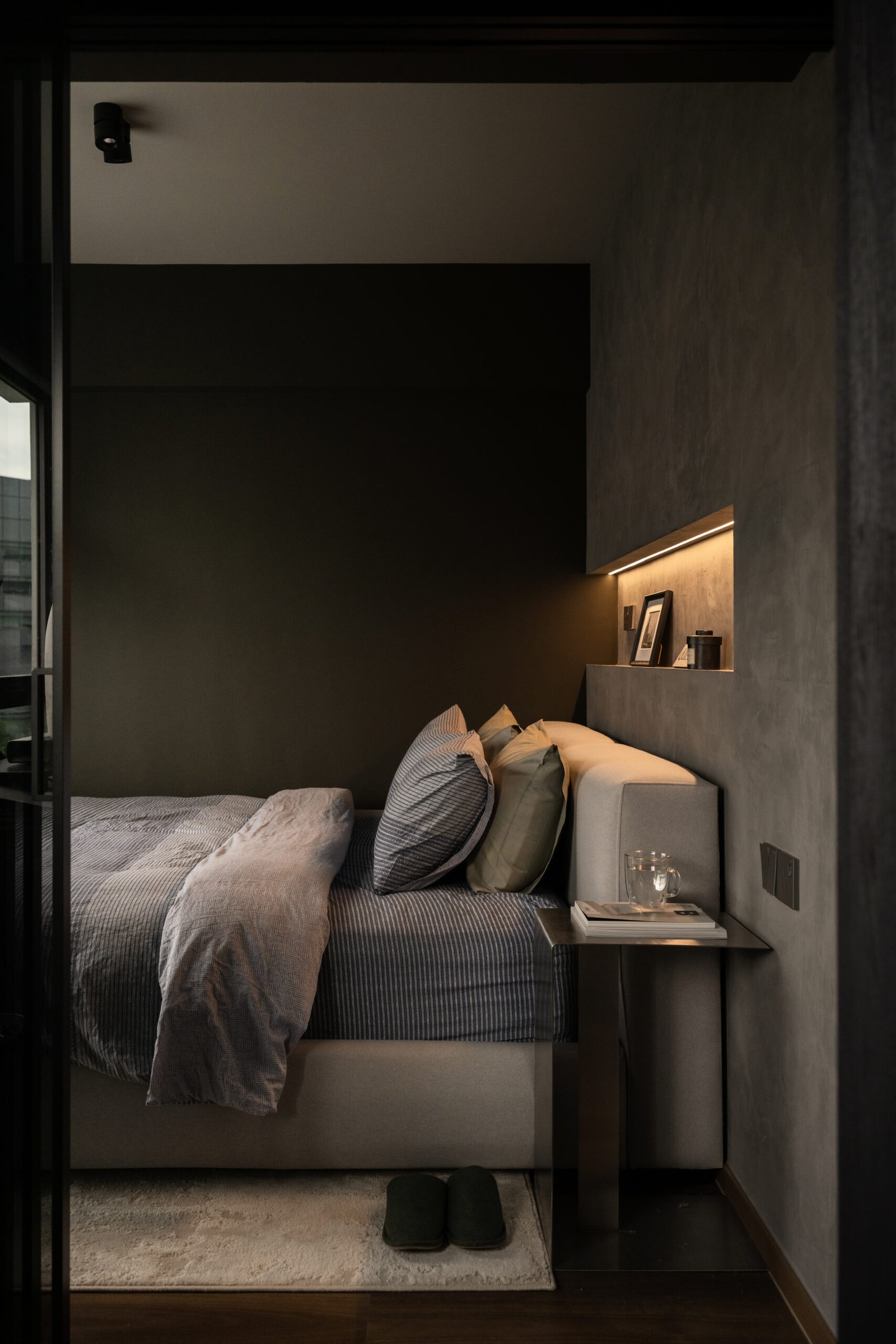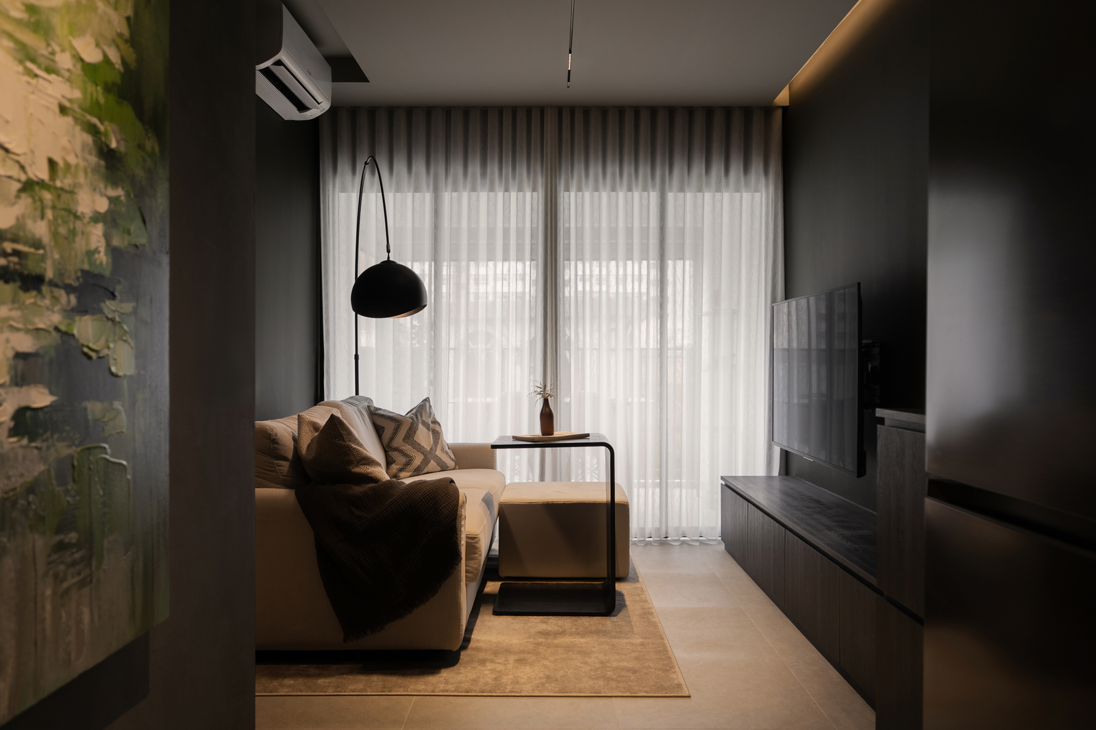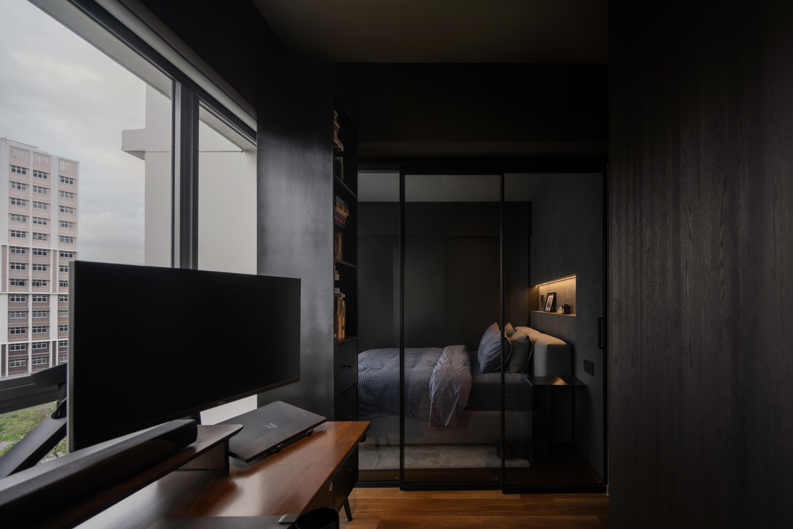 Designed with a love for darker tones and a cosy yet contemporary aesthetic, this three-room flat reflects the owner’s wish for a minimalist home that is both functional and welcoming. The space was reimagined to maximise space while bringing in a quiet sense of modern living.