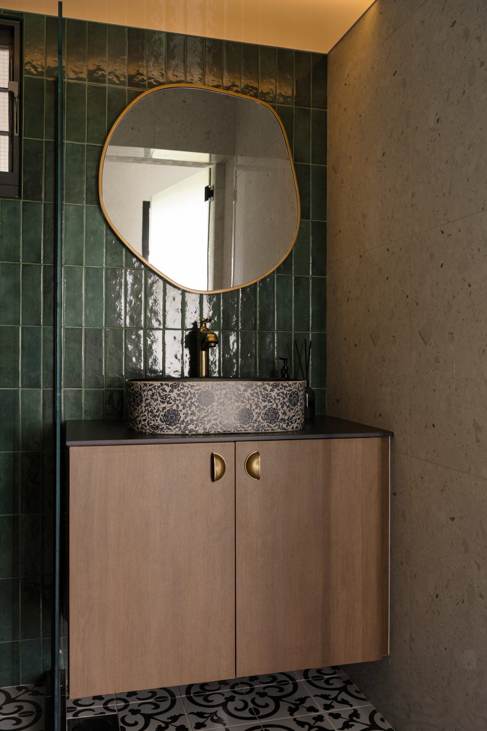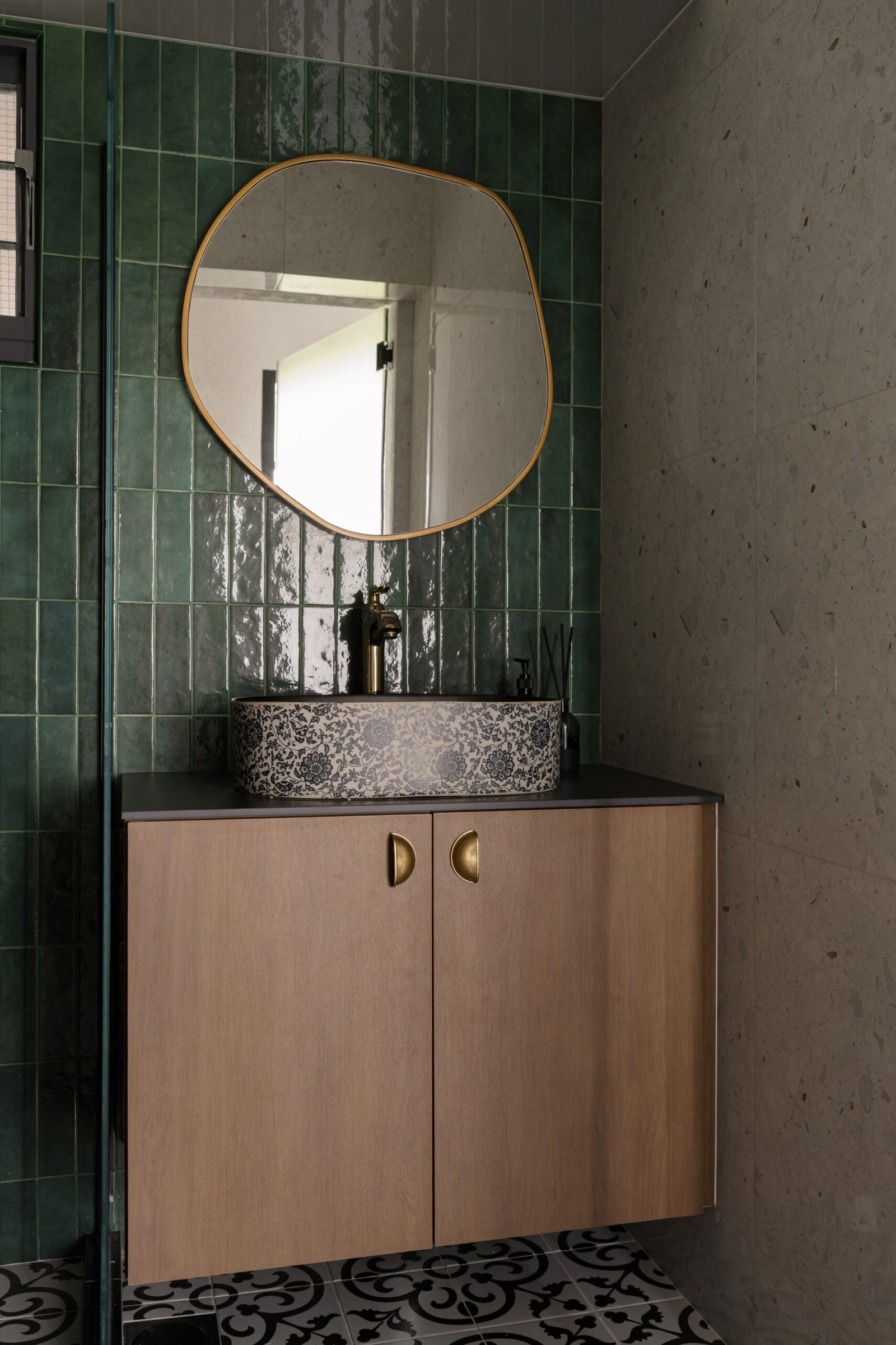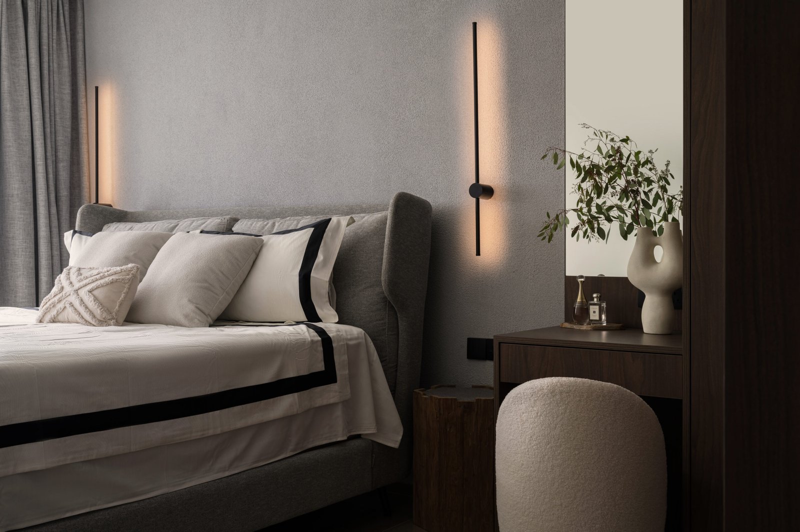 The master bedroom is a serene retreat, designed for both rest and personal rituals. Soft, darker wood tones create a cosy atmosphere, while a dedicated dresser area adds a touch of practicality and elegance. It’s a space where mornings begin with quiet preparation, and evenings are spent winding down.