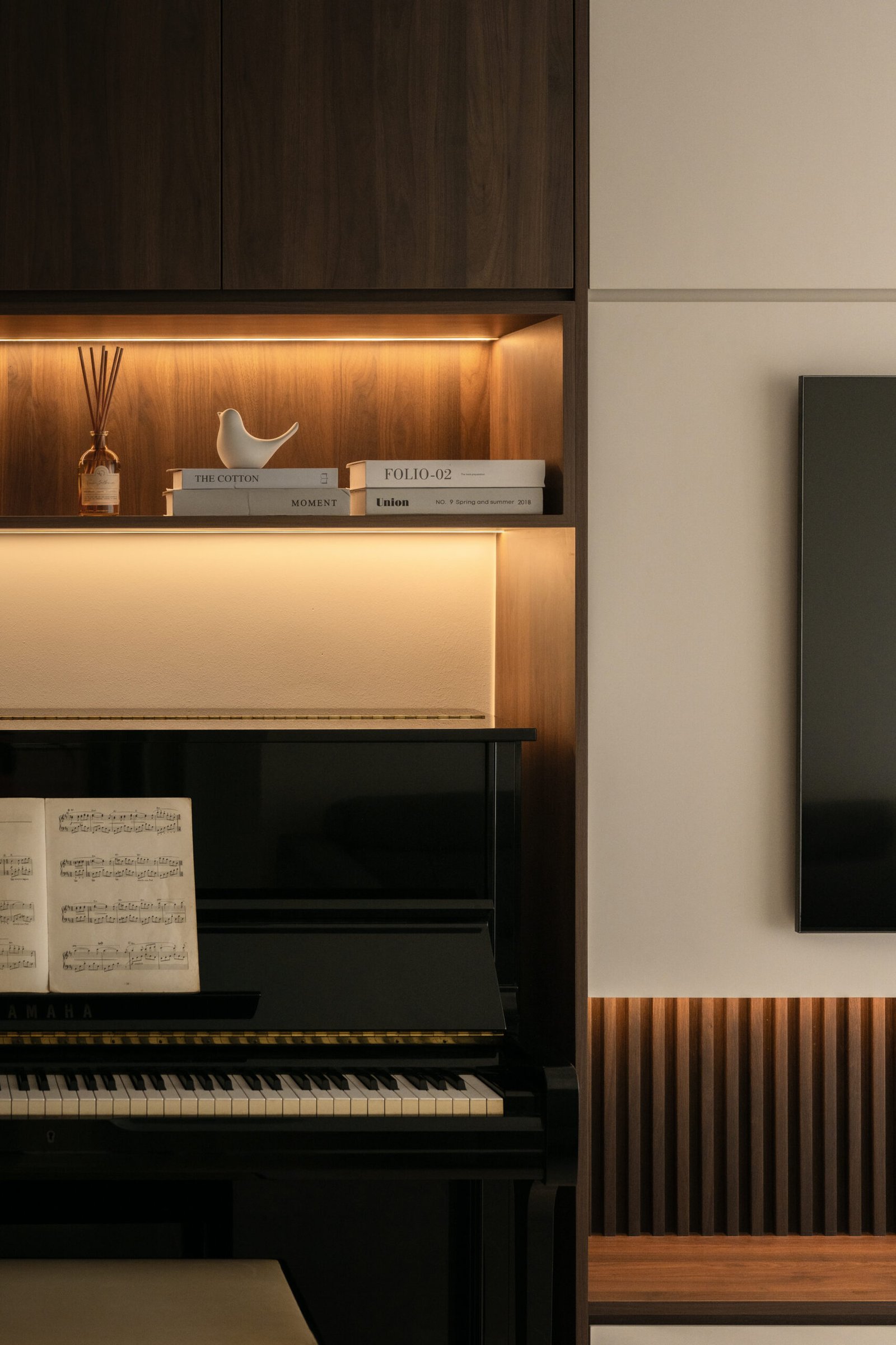 Stepping into the home reveals a sophisticated blend of textures and tones. Dark wood and fluted panels create a sense of depth and warmth, while microcement laminates bring a modern, understated elegance.